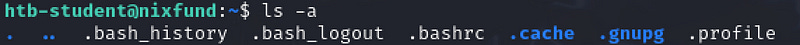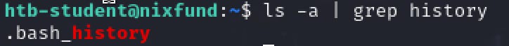 For this, we are supposed to find the hidden “history” file in the home directory of htb-user. This is stated previously in the section. To do this, we will have to use the ls command along with -a.