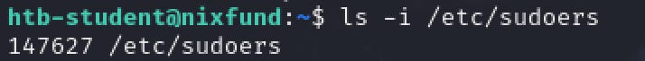[+1] What is the index number of the “sudoers” file in the “/etc” directory?